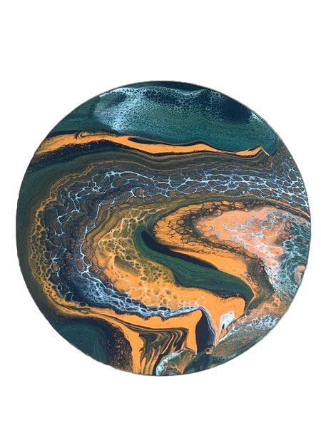 An acrylic painting titled "Green Dragon's Fire" combines the symbolism of dragons, the color green, and orange fire to represent wisdom, transformation, and rebirth. The specific meaning can be highly personal to the artist, but it generally evokes themes of creative power, natural cycles, and inner renewal. Dragons are often depicted as embodying life energy. A dragon can represent the inner psyche, including untamed emotions and buried knowledge. Dragons are frequently seen as powerful guides for personal development and acquiring ancient knowledge. Green represents the earth element, signifying growth, renewal, and new beginnings, like the start of spring. Green is associated with healing and the regenerative power of the natural world. Orange Fire can represent the inner intensity and passion of the artist. An artist might use the theme to symbolize the act of finding and harnessing one's internal passions to overcome obstacles and forge a new path.